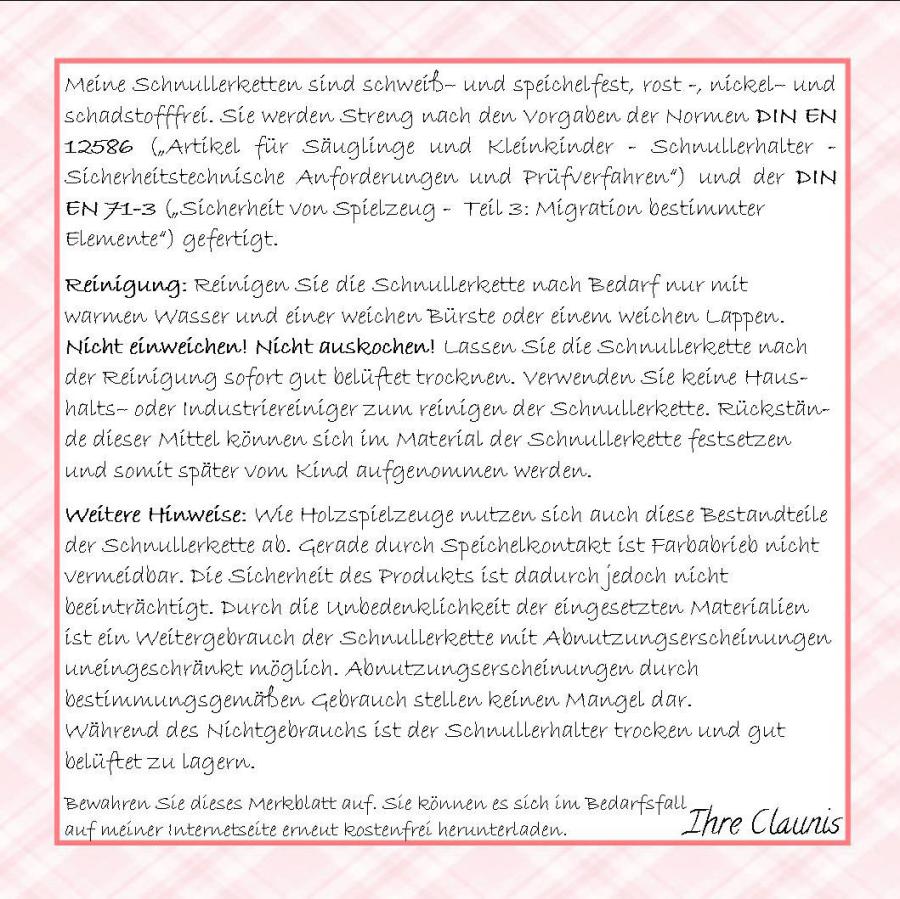 Gebrauchsanweisung - Warnhinweise - Schnullerkette